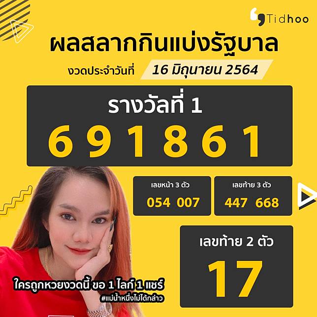 ตรวจหวย ตรวจสลากกินแบ่งรัฐบาล ตรวจลอตเตอรี่ 16 มิถุนายน 2564.
